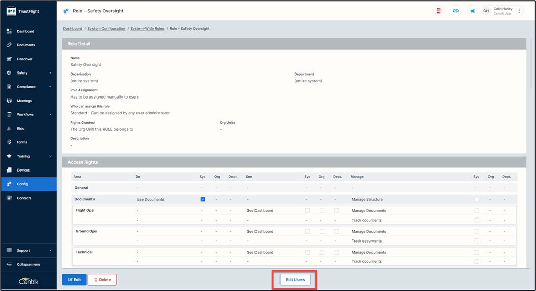 You can add users directly to this role through their individual contacts page or alternatively once a System-Wide role has been created there is an ‘Edit users’ button displayed at the end of the page.