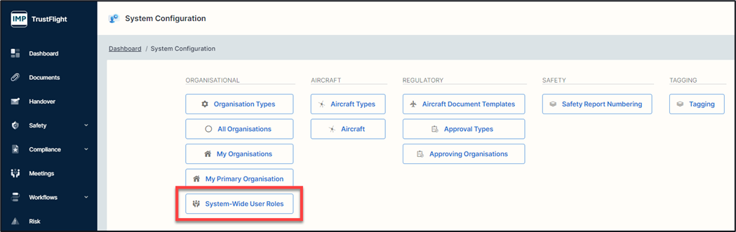 1. Click on the ‘System-Wide User Role’ button