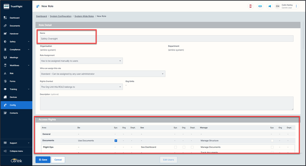 System-Wide User Roles – An area to create Roles and allocate access rights for your entire Centrik system
