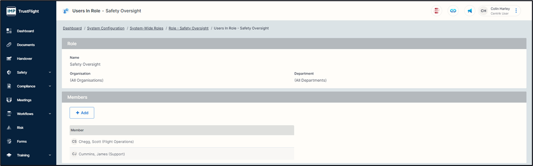 A list of Roles that have system wide access are displayed, to view any of these click on the name of the Role.