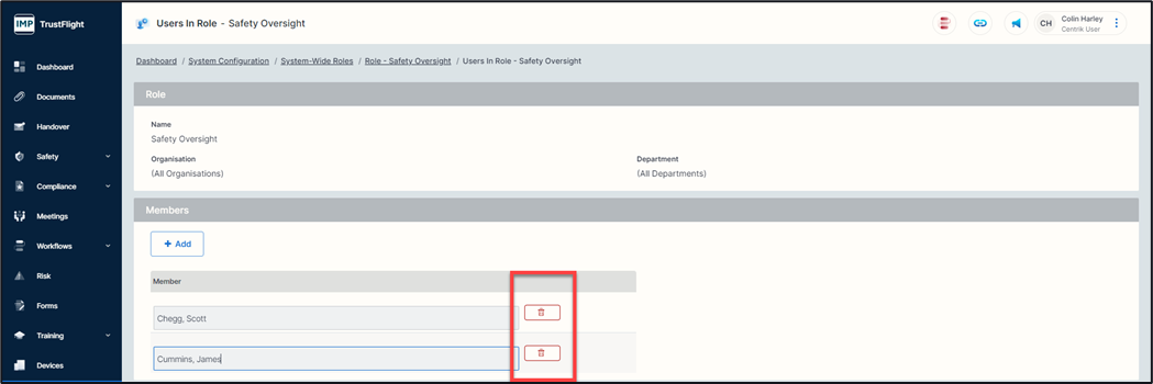 You can remove an individual from this list by clicking on the ‘Edit’ button, or by clicking on the page to place it into edit mode and clicking on the ‘Dustbin / Delete’ icon beside their name.
