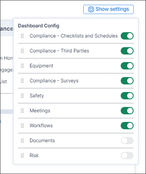 The introduction of widgets in Centrik 5 offers advanced customization. Each one can be enabled / disabled with a single click (within Show settings) and they can be ‘drag and dropped’ into distinct positions, allowing users to create their own personalized layout.