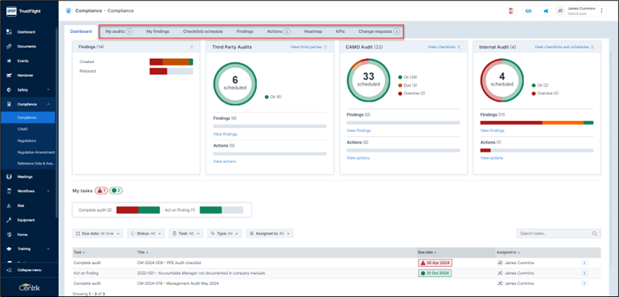 After logging in, the first screen shown is the Personal dashboard tab. Formerly a section on the Centrik 4 home screen (Personal Status), this new dedicated tab makes it clear and simple for users to immediately see any outstanding or upcoming tasks assigned to them.