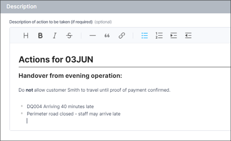 Rich text formatting has been introduced in Centrik 5. This offers enhanced styling features to basic text, including various formatting elements such as bold or italic text, lists and links.
