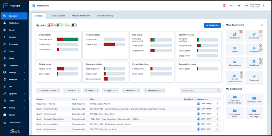 - Bookmark evidence, audit trails, or inspection reports to quickly retrieve them during CAA, EASA, FAA, or internal audits.