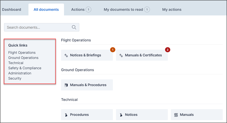 A key difference, however, is that subsystems no longer appear as individual tabs. Subsystems do still exist and function in the same way, however they now appear within the 'All Documents' tab, as separate headings.