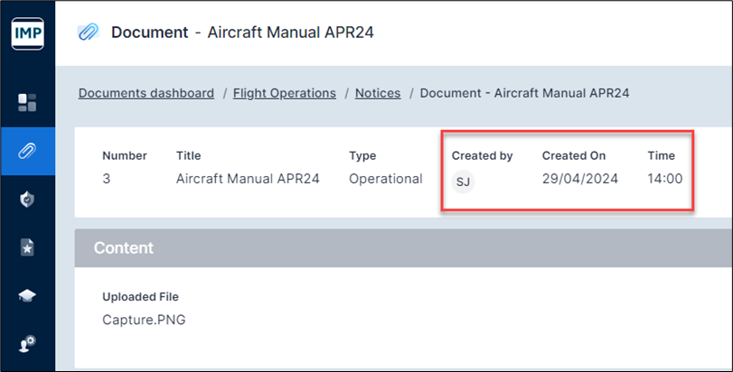 When creating a new document, the ‘created by’, ‘created on’ and ‘time’ is now included in the very top section, reducing the overall number of sections.