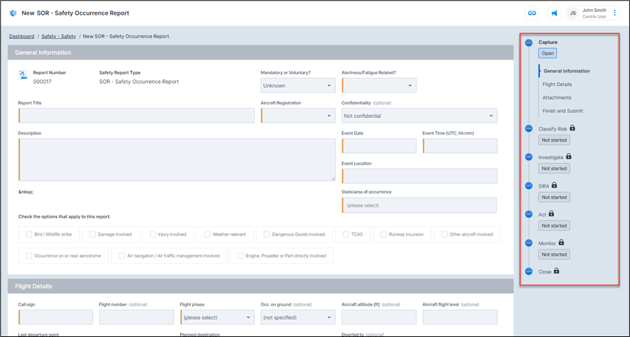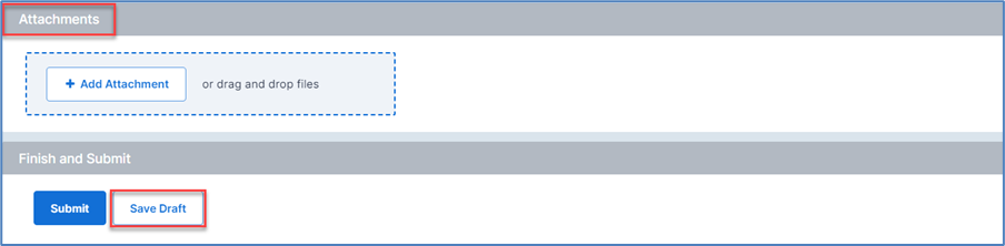 The ‘Attachments’ section now appears before the ‘Finish and Submit’ section and the ‘Save Draft’ button has been moved to a more logical position, formerly at the top of the page in Centrik 4.