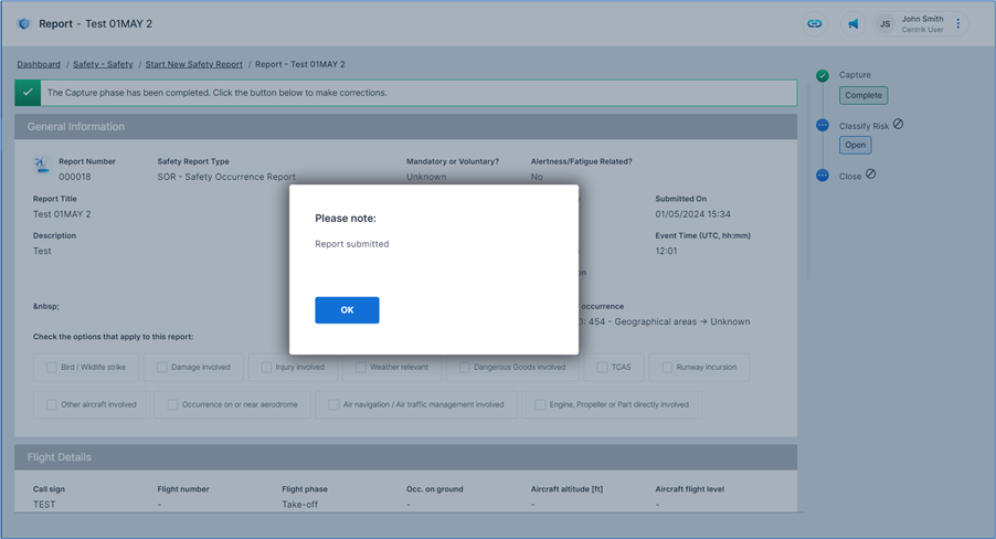Centrik 5 allows for the creation of feedback templates that can be used during the Close phase of a safety case. By introducing a new panel Safety Managers can send feedback to a user, or users that relates specifically to a report that they have raised.