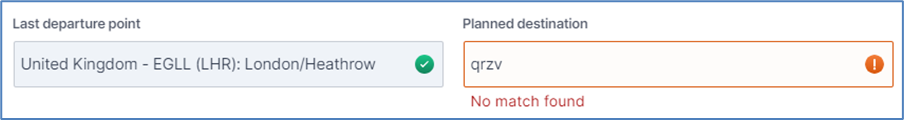 Further examples of improved explanations / instructions can be found during the process of completing a report, for example fields such as ‘Last departure point’ and ‘Planned destination’ will now present an icon and text response (No match found), instead of relying solely on meaning through colours.
