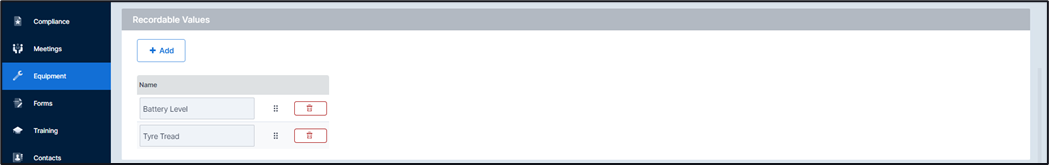 1. Within the Recordable Values area, click on the ‘+ Add’ button