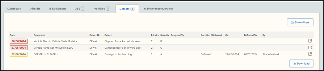 1. Follow the link to the open defect, or open the defect from the defects tab and select the piece of equipment