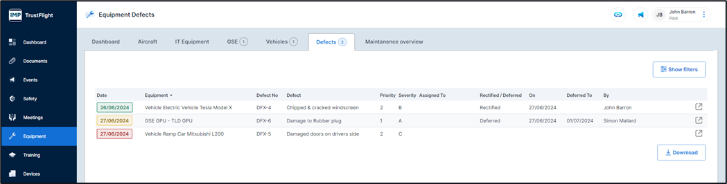 1. Follow the link to the open defect, or open the defect from the defects tab and select the piece of equipment