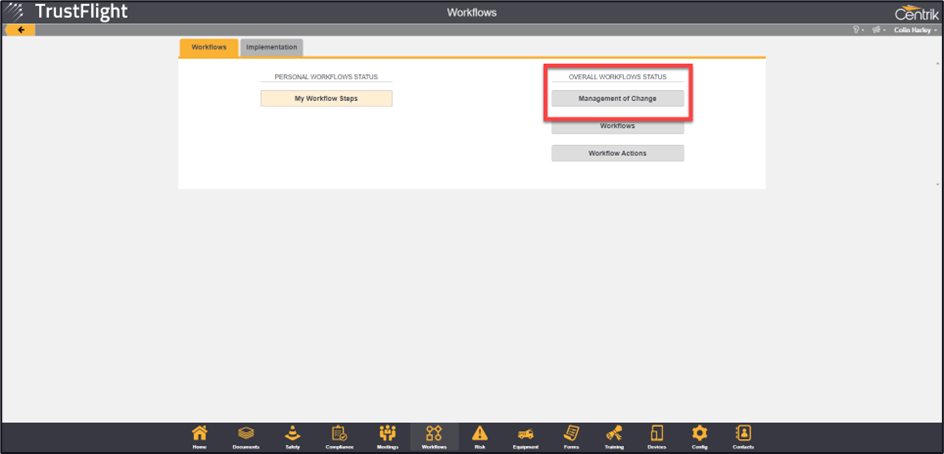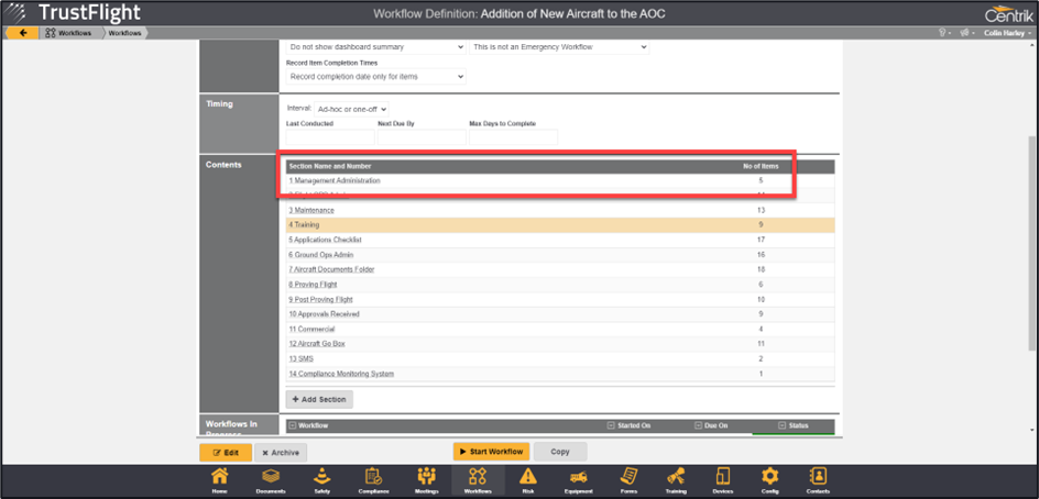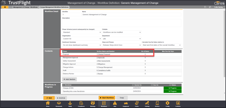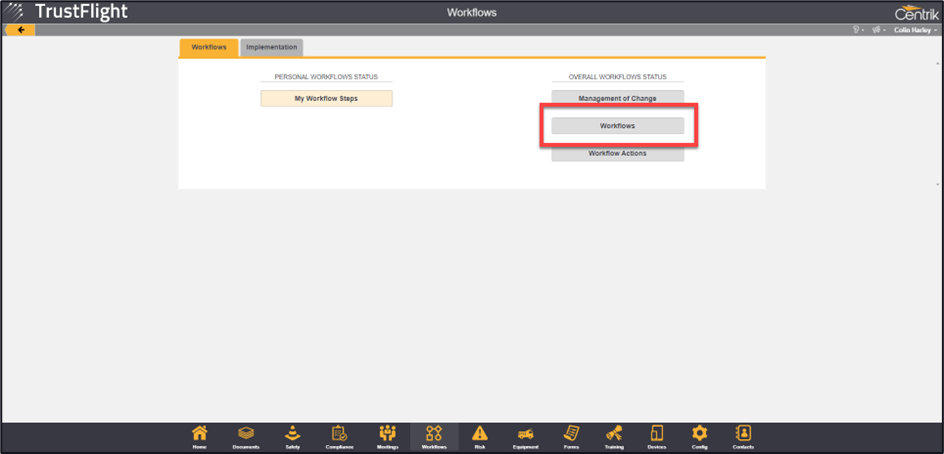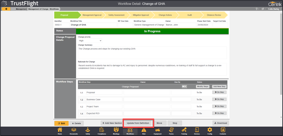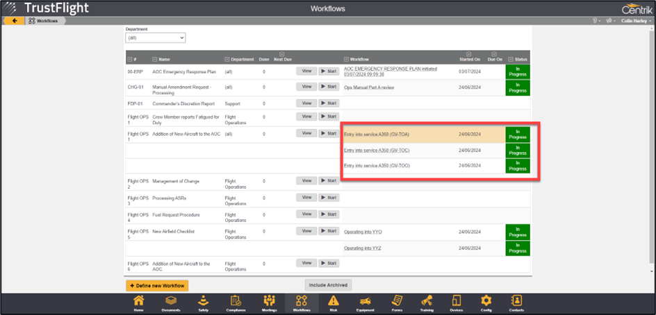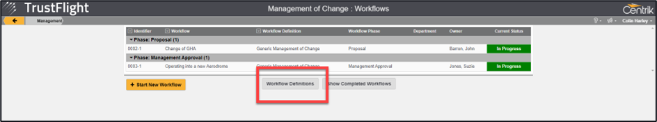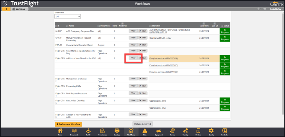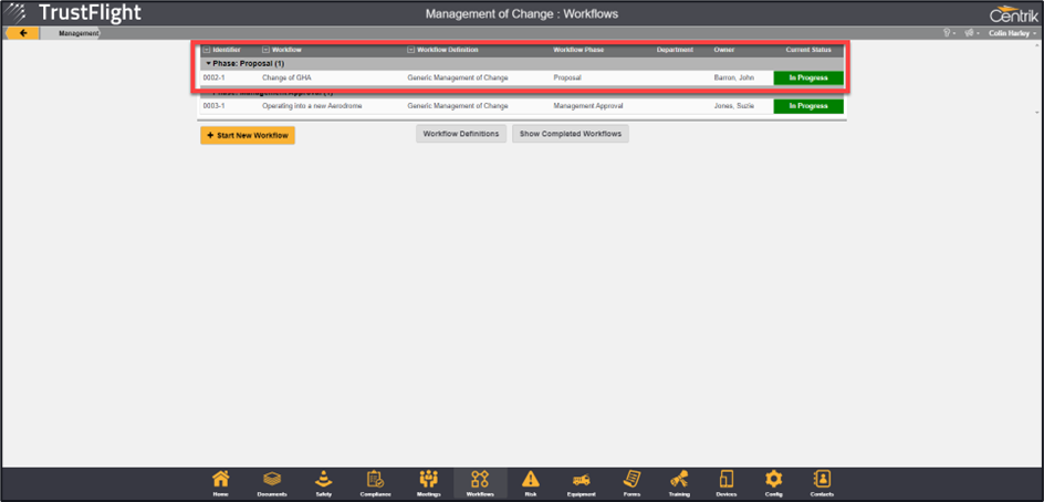 2. Select the required in progress workflow by clicking on the title of the workflow