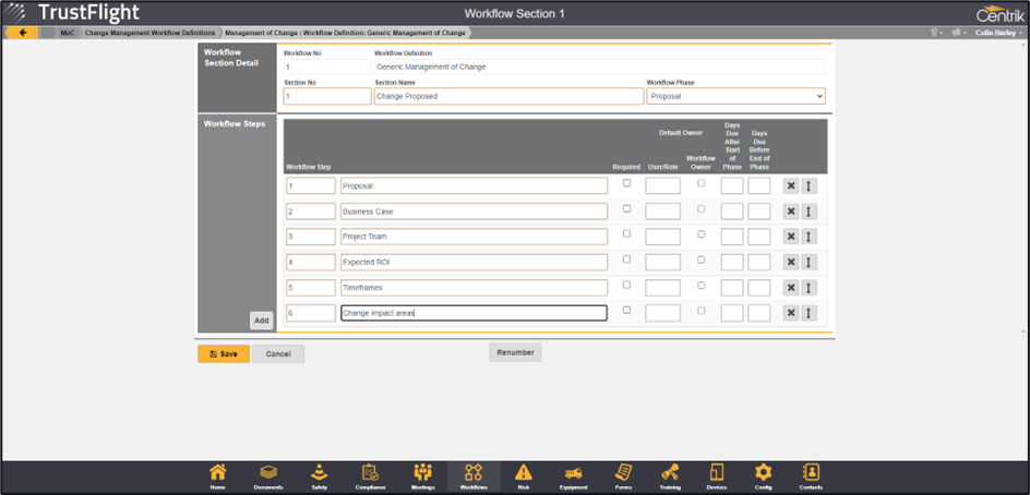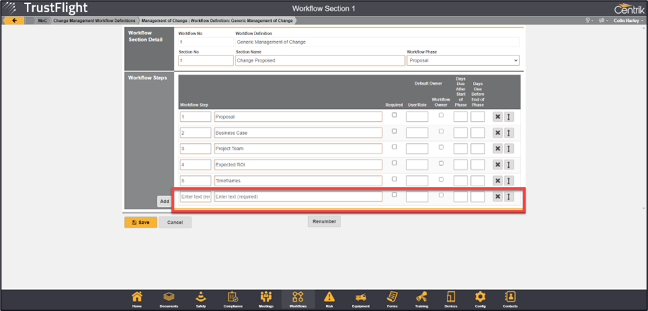 7. If adding an additional step enter a number into the workflow step area (or click on the ‘Renumber’ button) and give your step a title