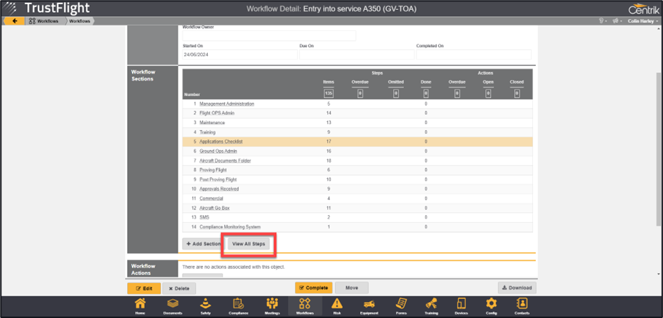 3. Once the workflow is displayed click on the ‘View All Steps’ button