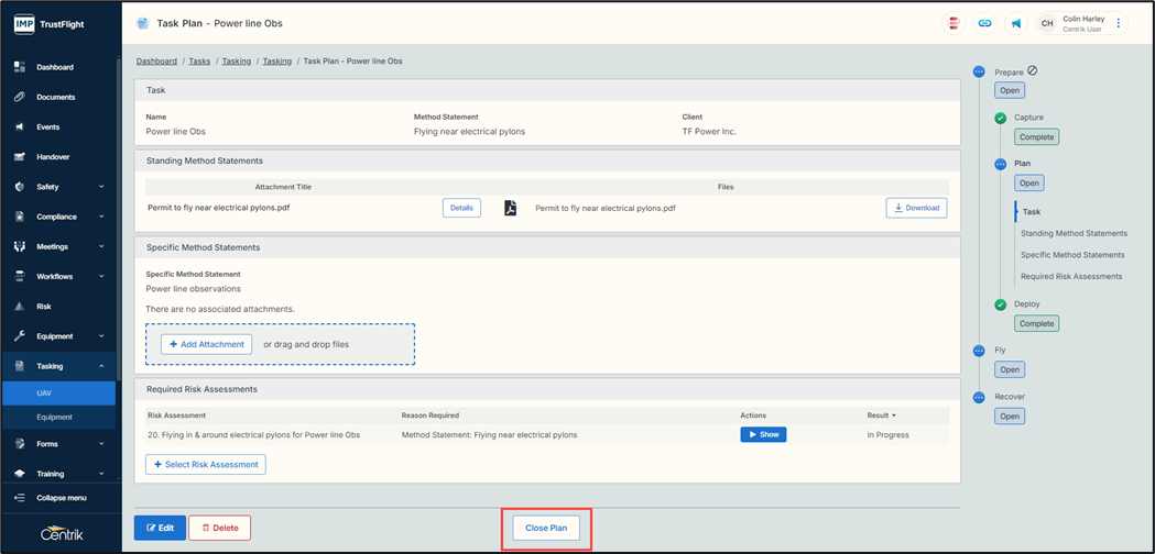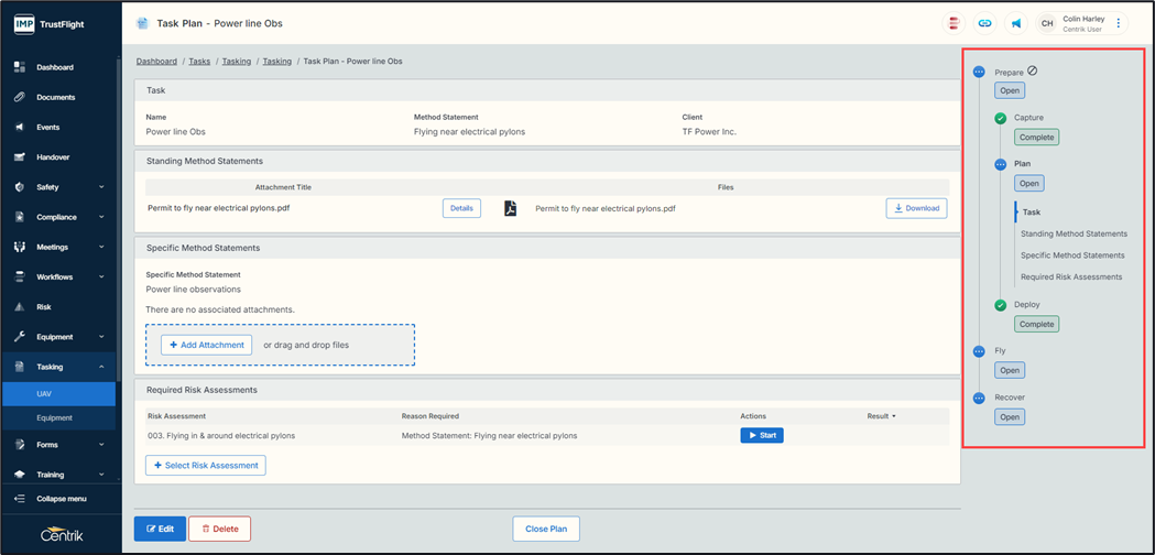 The plan phase will hold any information relating to the method statement including any associated risk assessments.