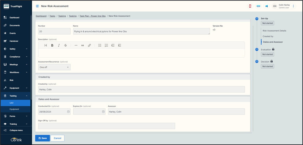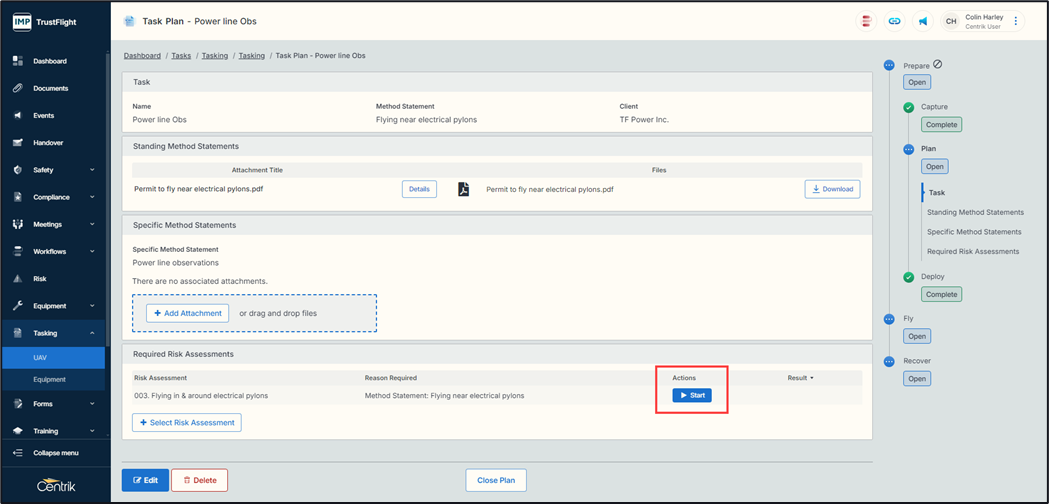 2. Under the Required Risk Assessments section (if there is a risk assessment), click on the ‘Start’ button