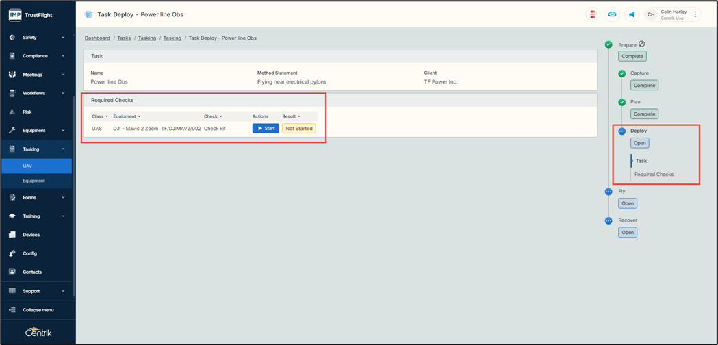 2. Click on the ‘Start’ button of any checks that need to be completed