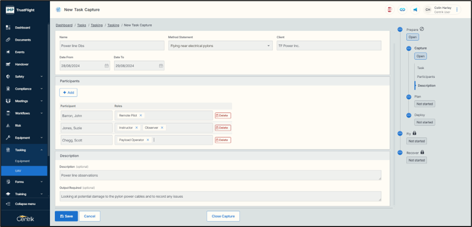 When starting a new task and in line with other modules the phases run along the right-hand side of the screen, this allows the user to see where they are within each phase.