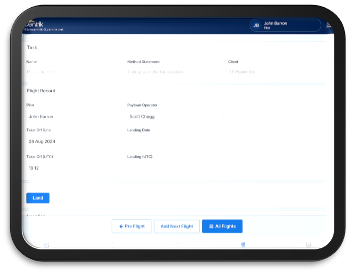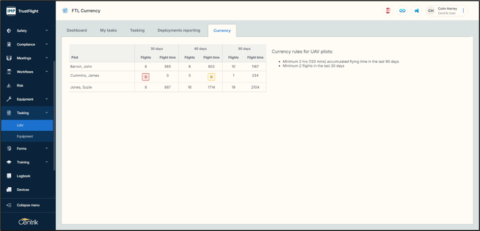 The landing dashboard page provides a dynamic overview of flights and flight minutes alongside any tasks that the user might need to action.