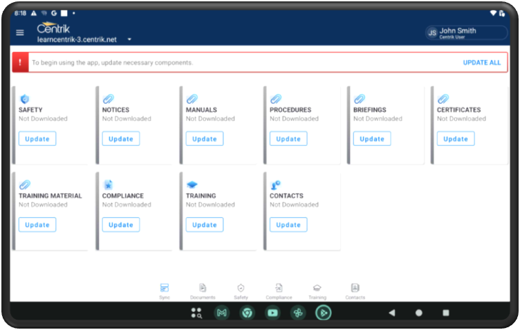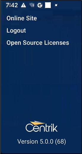- The app version number is now visible at the bottom of the screen, beneath the Centrik logo