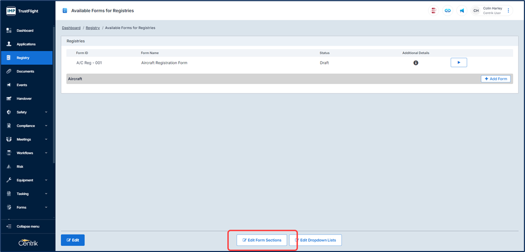 2. Click on the ‘Edit Form Sections’ button.