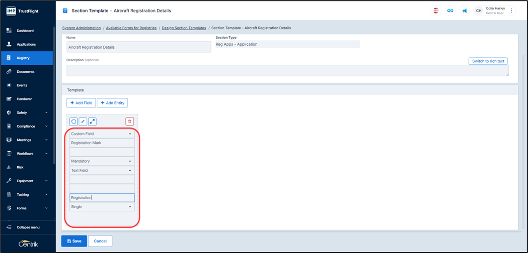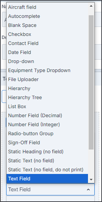 Add Field – gives you the ability to add a single field that can be configured to contain items such as a simple text, multi text field, Aircraft dropdowns, date fields, or single ADREP fields.