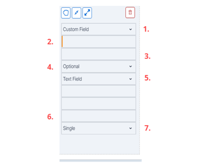 9. Enter in the details for this field, for example if it is a custom field, the text title of the field, whether the field is mandatory or optional, the type of field required and if you can use it only once or multiple times.