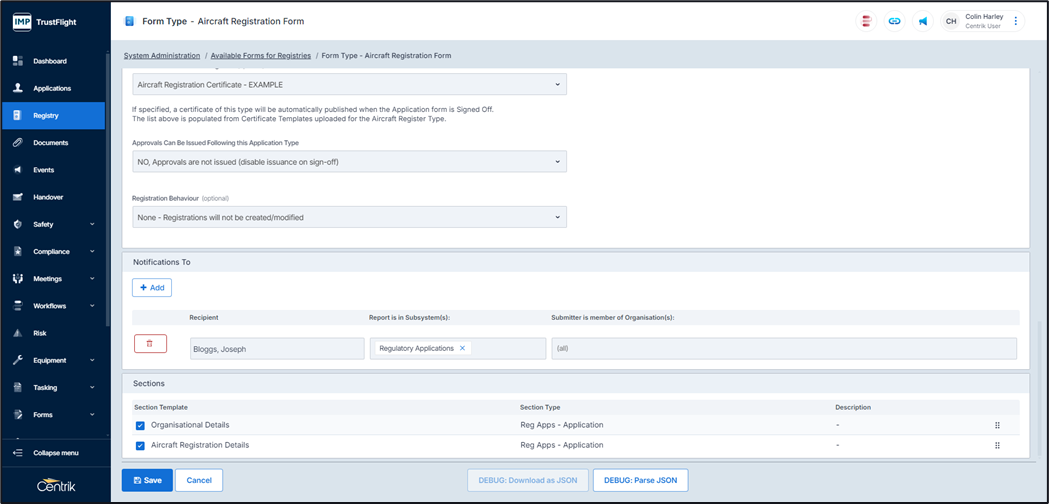 Once a form section or form sections have been created you can select these to create your form.