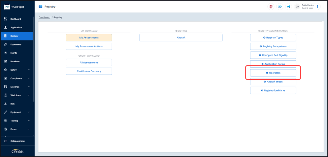 1. Click on the ‘Operators’ button, you arrive on the landing page allows you to search for organisations