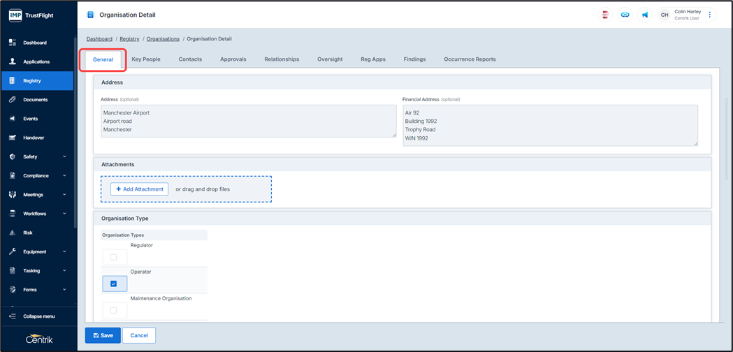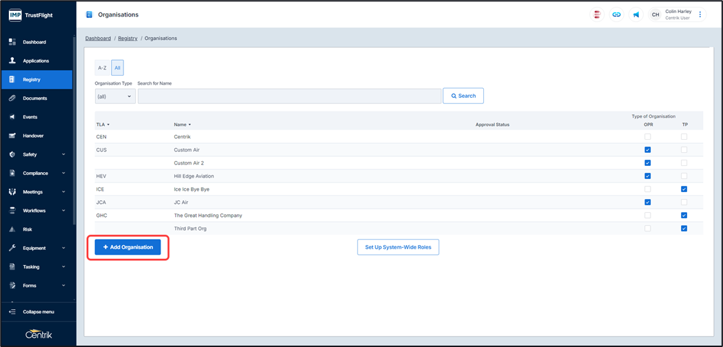 The adding of organisations allows you to create the organisation within your Centrik system, once added you can include key contacts, organisational information and allow individuals access to your Centrik site. This will allow you to raise Actions for them to complete, answer findings, and allow them access to submit applications.