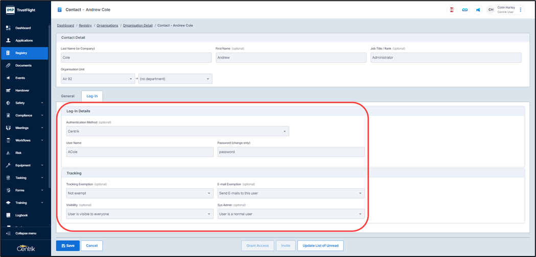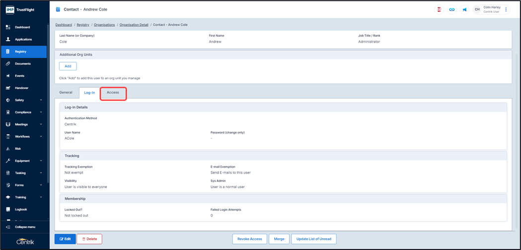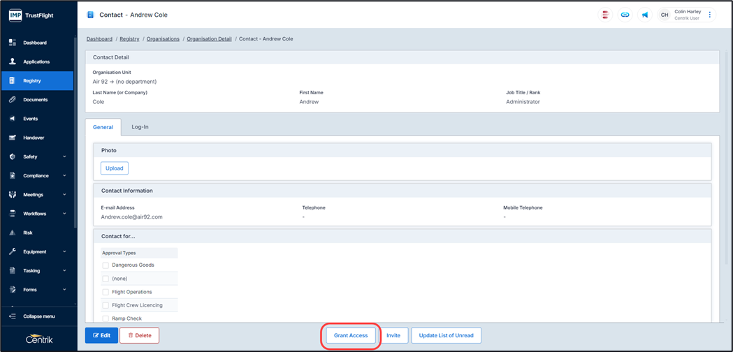 12. To grant them Centrik system access, click on the ‘Grant Access’ button