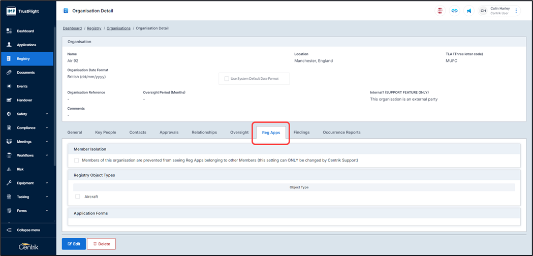 There are oversight areas to view (by selecting the appropriate tab), these include Findings, Occurrence reports, Approvals and associated items within the Relationship area.