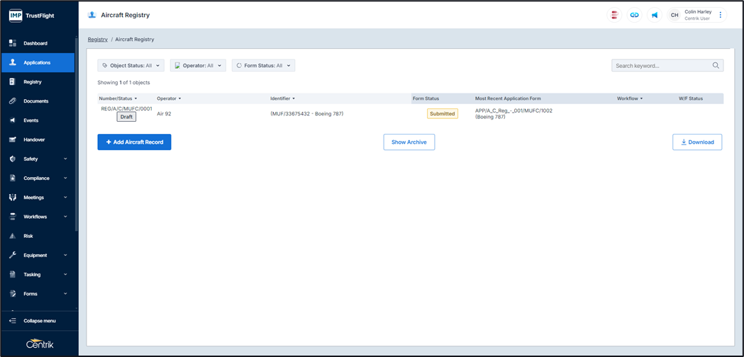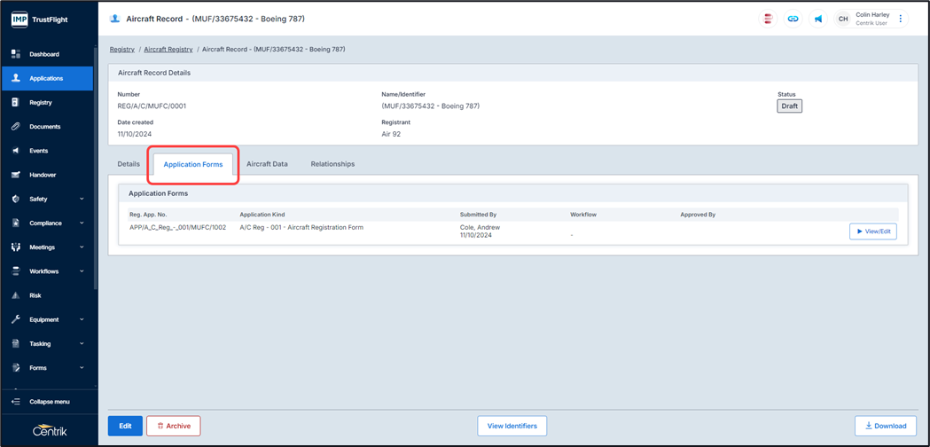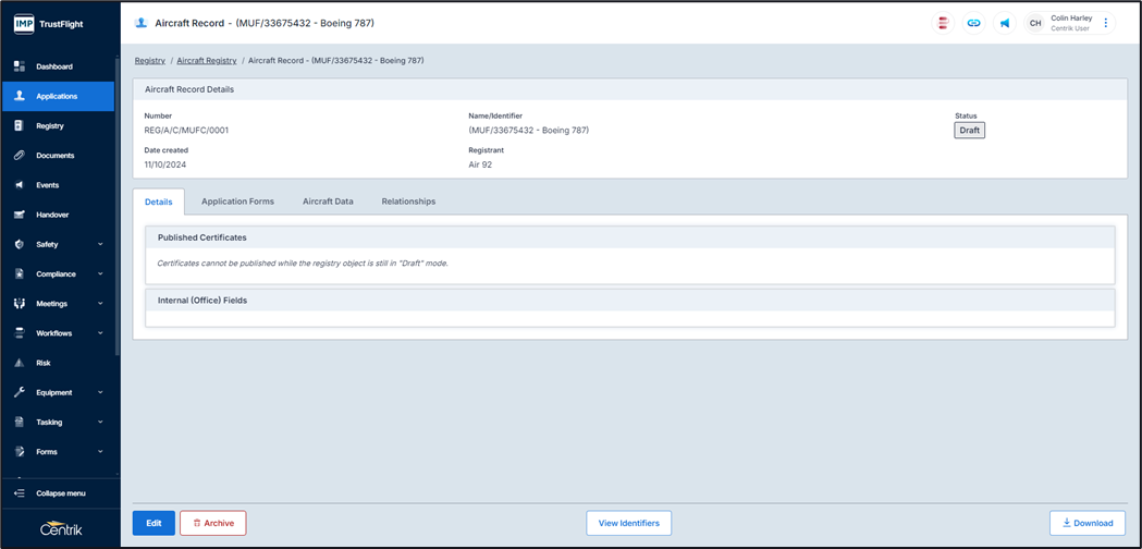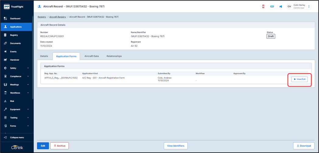 The registry entry can also be viewed within the Review phase by clicking on the ‘View Registry Entry’’ button.