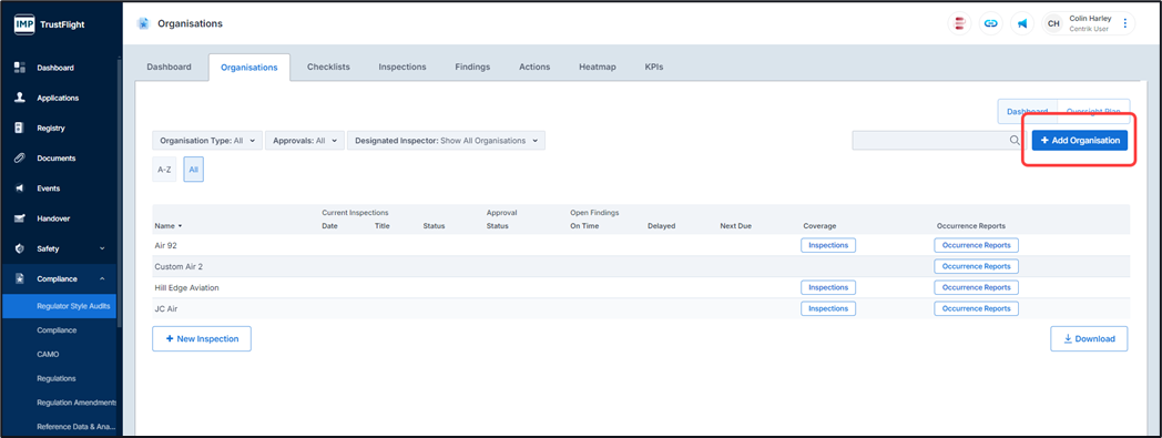 When all Organisation details have been completed you can move onto the Checklist tab on the landing page of the compliance subsystem.