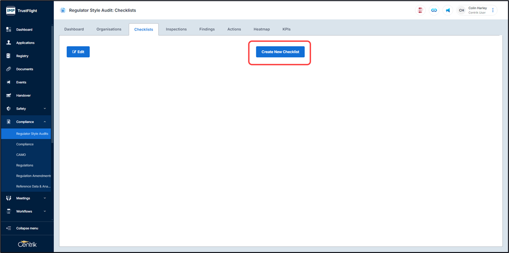 1. Click on the ‘Create New Checklist’ button