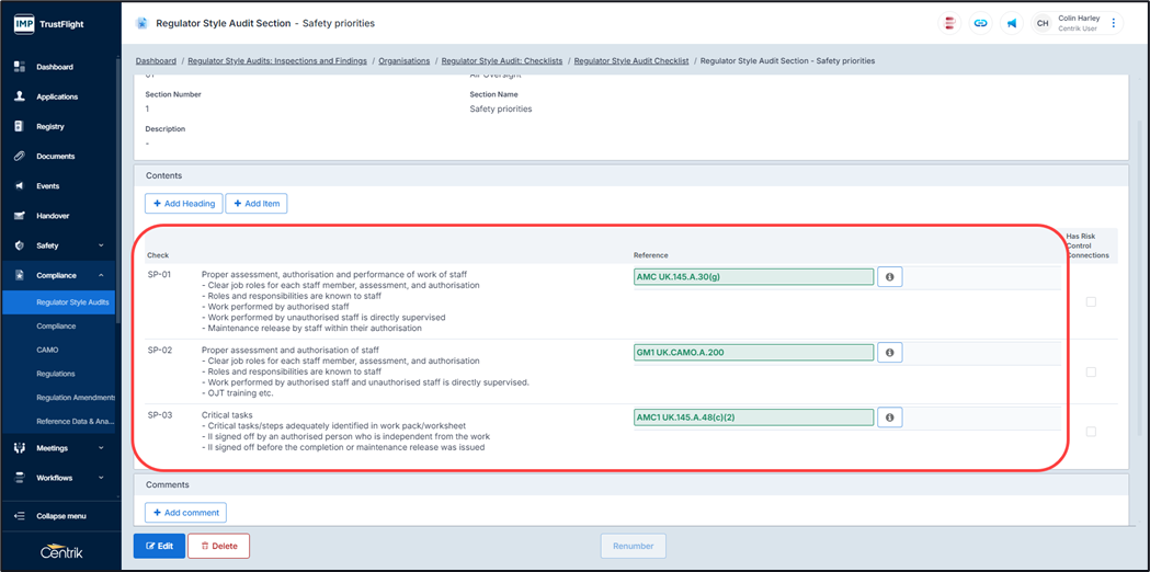 You are also able to add in any relevant regulations against a checklist item.