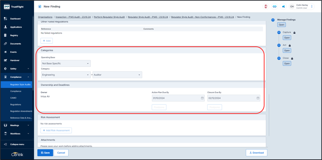 The responsible owner is then able to submit their corrective action plan to the authority for approval.