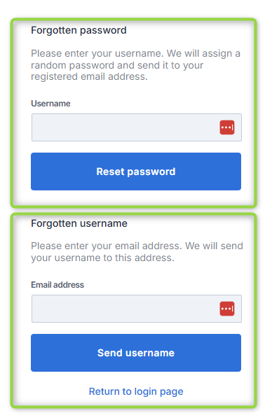 Following this, select the appropriate link to either reset your password or receive a username reminder via email.