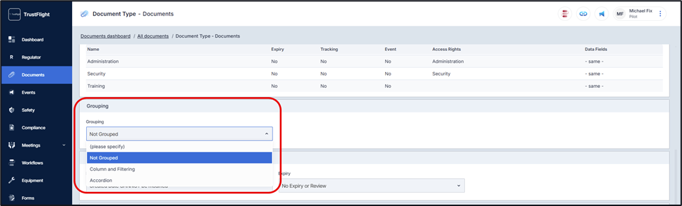 Grouping allows you to alter how your documents are displayed as a summary overview within a folder, if set at the Parent level, all Children level folders will inherit these settings by default, if not overridden.