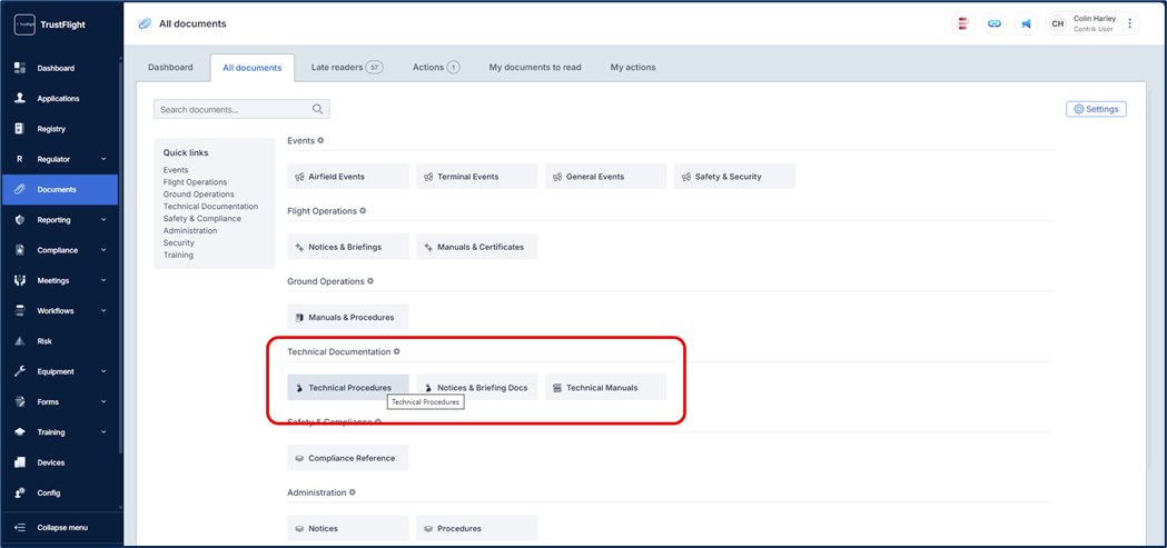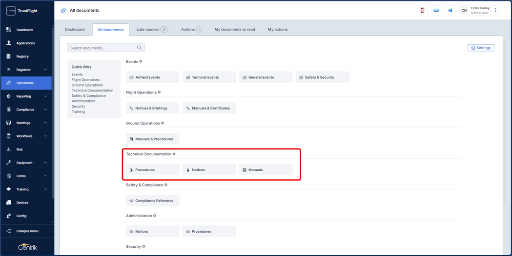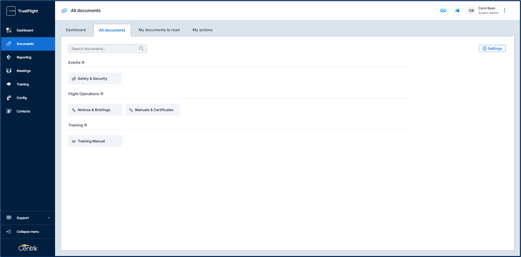 Users with ‘Manage Structure’ access rights will have more access in the Documents module and will see additional screens / features.