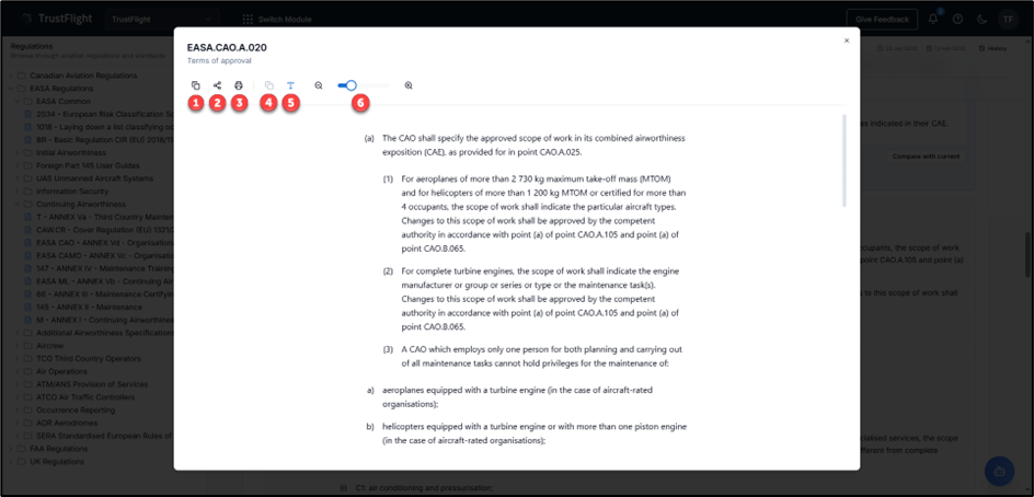 - Print regulation – lets users print the selected regulation.