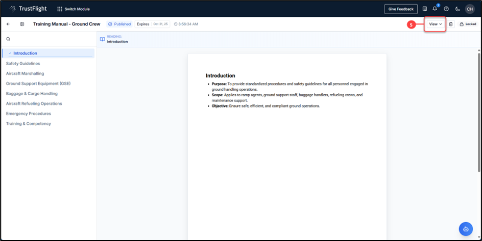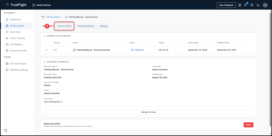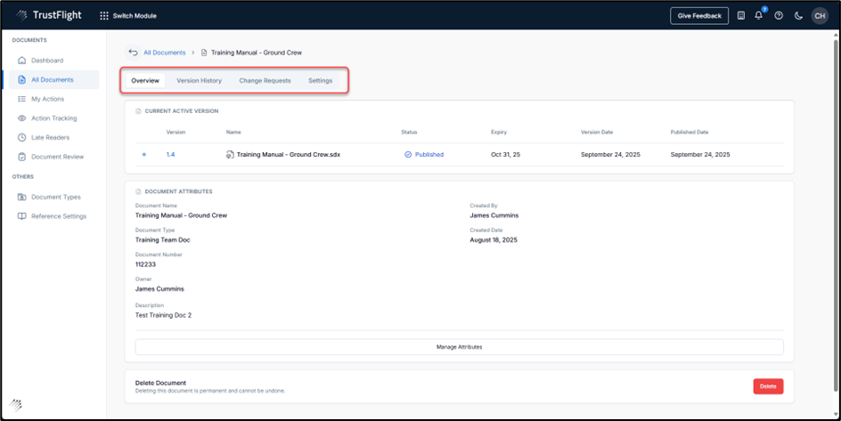 You are directed to a summary page for this document, various tabs are available to use from within this page, initially you are directed to the Overview tab.