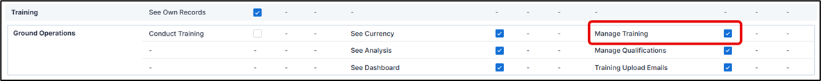 Users with the ‘Manage Cases’ access right can edit certain fields within these tabs, allowing bulk updates without needing to visit individual training records. Users with See Currency access can view these tabs, but cannot make any edits.