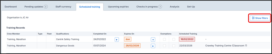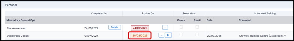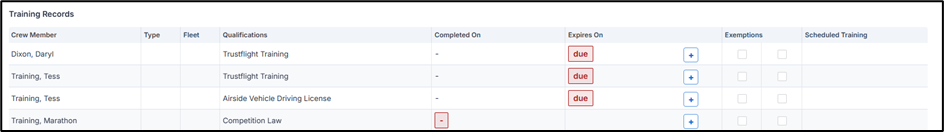 - This helps distinguish between qualifications that are overdue and those that have training scheduled for revalidation.